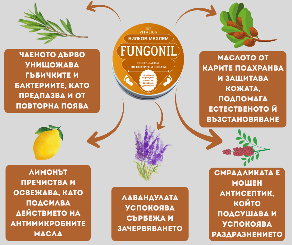 Ефективна натурална защита срещу гъбички - пречиства, възстановява и предпазва кожата и ноктите