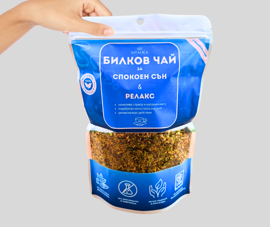 🌿 Валериана (корен) – Натурален сънотворен ефект, който помага за бързо заспиване и намаляване на безсънието.