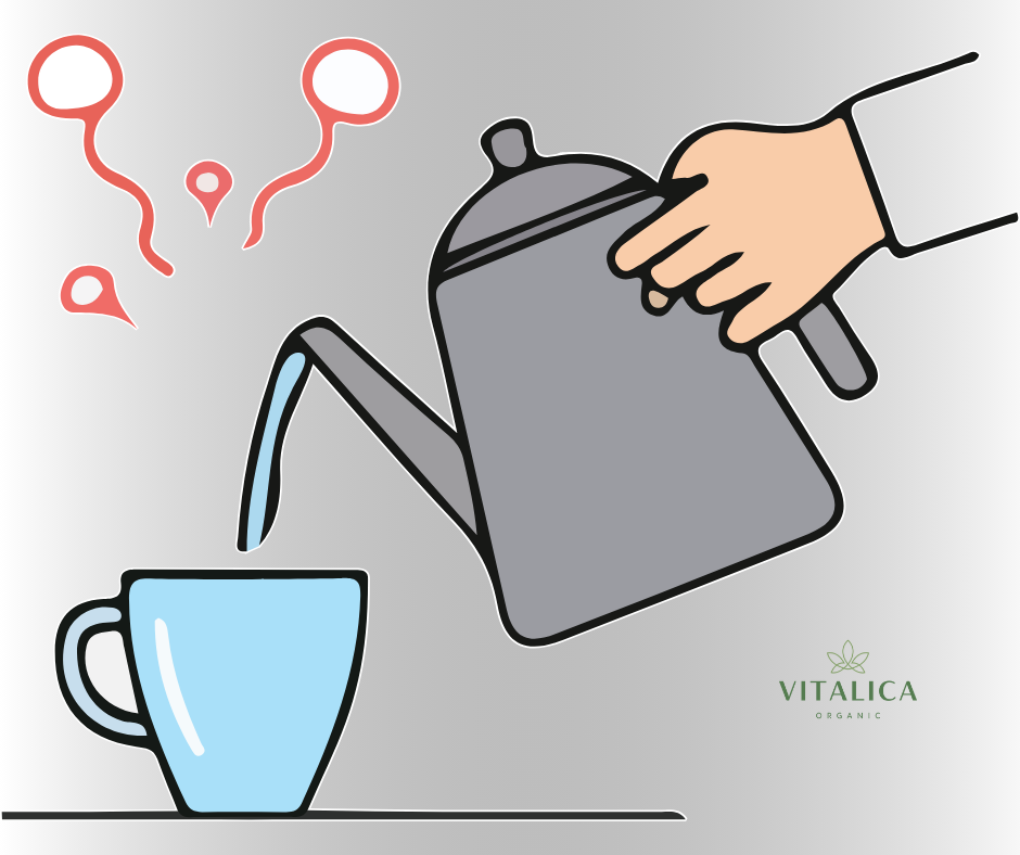 Сложете 1 чаена лъжичка от билковата смес в чаша от 250 мл гореща вода (около 90°C).